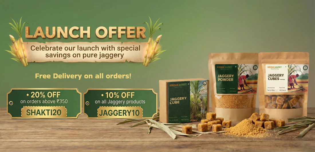 Every batch of Krishi Amrit jaggery is made using traditional methods passed down through generations - no chemicals, no preservatives, just pure natural goodness.
